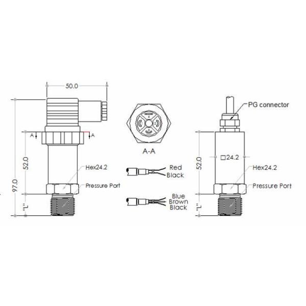 Various amplified output with 4~20mA, 0.5~4.5V, 0~5V.Various pressure ports, both cable and connector outlets are available; For maximum meeting customer’s needs, Special design will be provided if required.